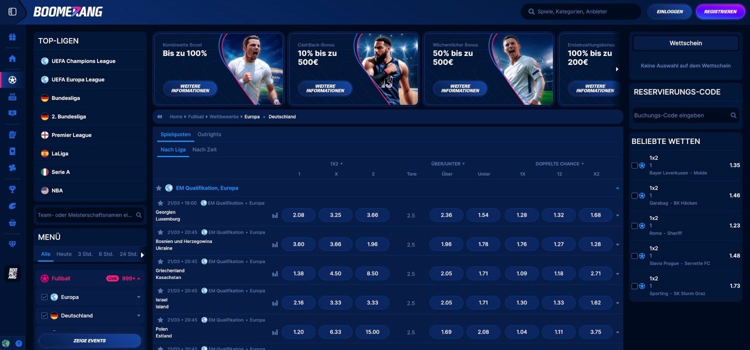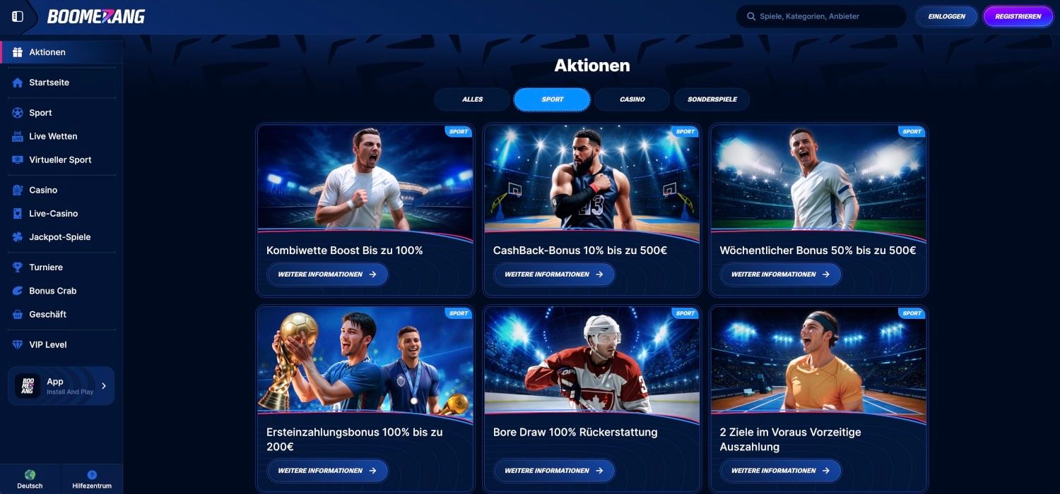 Boomerang Bet Sportwetten auf einen Blick