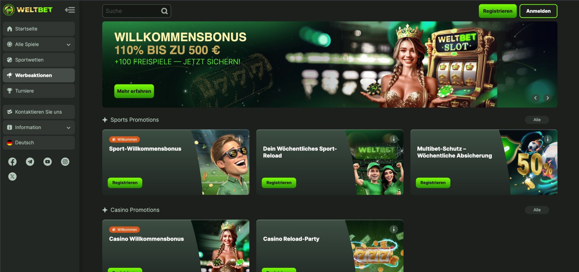 Der Weltbet Willkommensbonus: 110% bis zu 300€