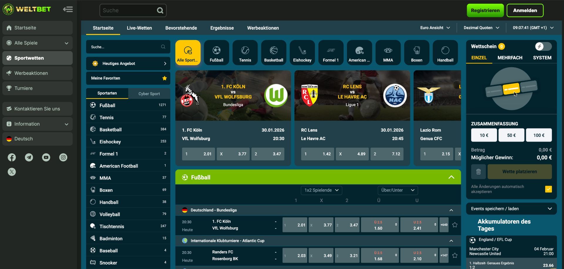 Auch die internationalen Wettbewerbe wie Champions League und Europa League fehlen nicht. Besonders beeindruckend ist aber die Tiefe bei exotischen Ligen. Wer auf Fußball in Malaysia, Indien, Ägypten, Sambia oder den VAE wetten möchte, findet bei Weltbet das passende Angebot.